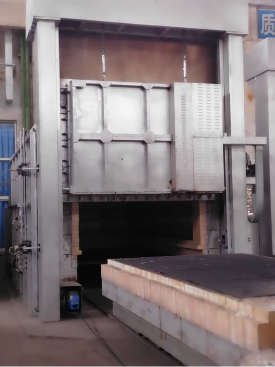 本臺車式電阻爐主要由爐殼、爐襯、爐門及升降機構、加熱元件、臺車臺車牽引機構、降溫系統、及智能電氣控制系統等組成;在整體設備設計中,充分考慮了爐門與臺車、臺車與爐體密封及指令加熱之間的安全連鎖裝置。即當爐門未開啟上升至設定位置時,臺車無法進出;當臺車未進入設定位置時,爐門升降指令無效。安全連鎖裝置,環環相扣,指令緊密,保證了整體設備的安全可靠運行。