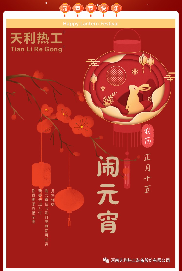 元宵佳節(jié),天利熱工祝您團(tuán)團(tuán)圓圓,好運(yùn)連連